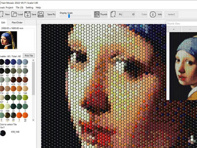 | Tile Mosaic Maker – Transform stone, ceramic, glass, and other tiles into mosaic artwork. | Fast Mosaic – A rapid design tool for mosaic artists. | Color Analyzer – Statistically analyzes the colors in an image and visualizes their distribution in RGB or HSB color space. |